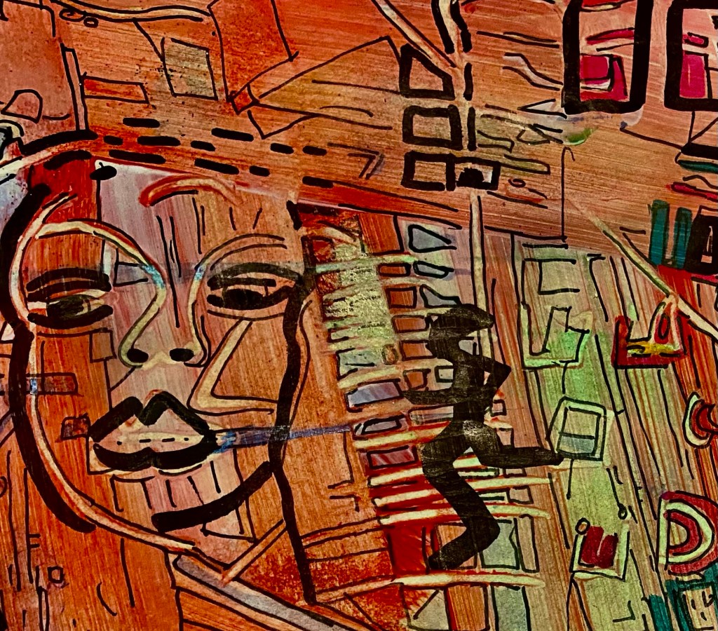 Er wirkt wie ein Blick in einen Spiegel, der nicht glatte Reflexion zeigt, sondern Schichten, Farben, Risse, Übergänge. Und genau darin liegt seine Schönheit.