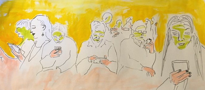 Oft wirkt es heute, als sitze oder stehe man einer weißen , ausdrucksbezogen farblosen Masse gegenüber, die nur ihre Welt des Smartphones kennt.
