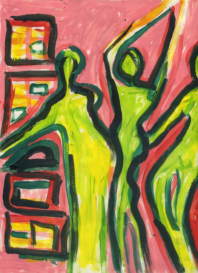 Grün nimmt da alle Variationen an. So, dass Tauben zu Falken, Sonnenblumen zum Kapitalobjekt Sonnenblumenöl werden, und die Zahl der Widersprüche immer grösser wird, weil die anderen Farben das Grün zu durchdringen versuchen.